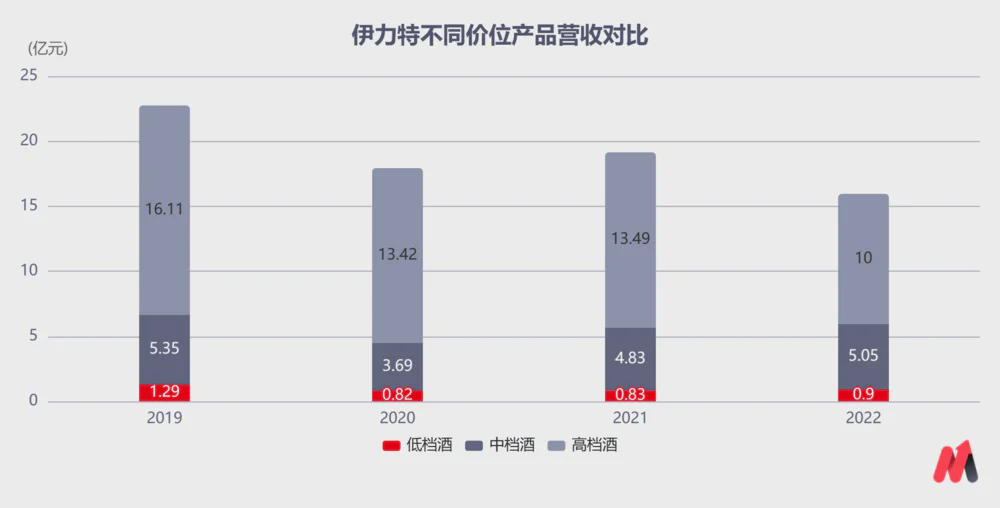 渠道端,2018年以前伊力特由于主导市场能力较弱,所以采取产品端开发买断、渠道端包销的模式,这种渠道模式之前使其疆内份额稳固,业绩稳定性强。但后来随着酒企间竞争愈发激烈,以渠道控盘和终端拦截为重心的B端营销逐渐式微,伊力特的市场份额被同业抢夺。