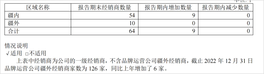 截至2022年底疆内已有54位一级经销商,疆外已有10位一级经销商。同时公司筛选6000-8000家终端做经销商直控终端,并积极清理渠道库存,预计明年公司将继续进行价格体系和费用调整,以支持产品放量。
