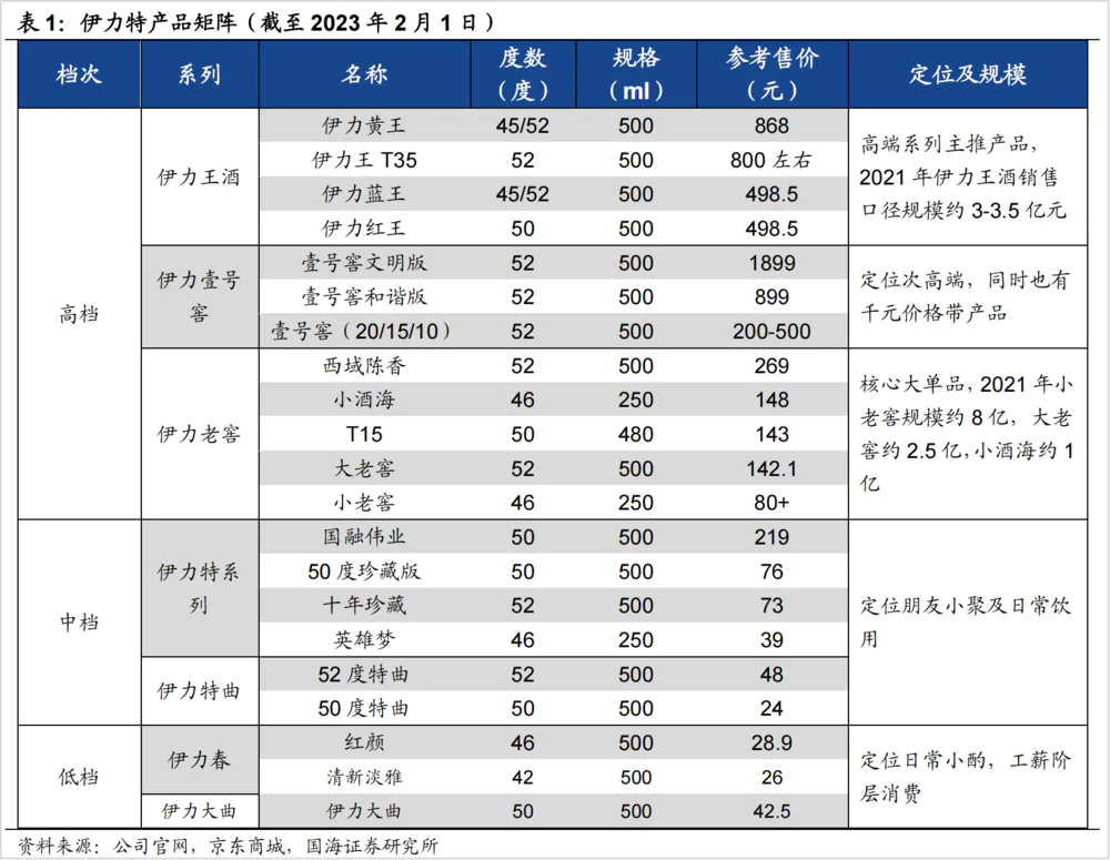 产品端,伊力特核心大单品伊力老窖系列(大老窖/半斤装小老窖)在疆内消费主流50~150元/瓶价格带占据显著优势。