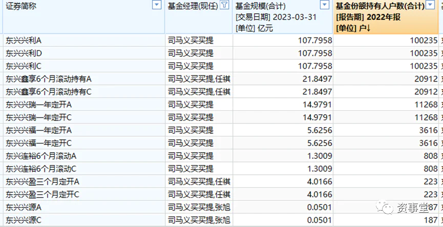 2021年4月,他开始管理东兴兴利。2022年年报显示,东兴兴利的持有人户数合计超过10万人。