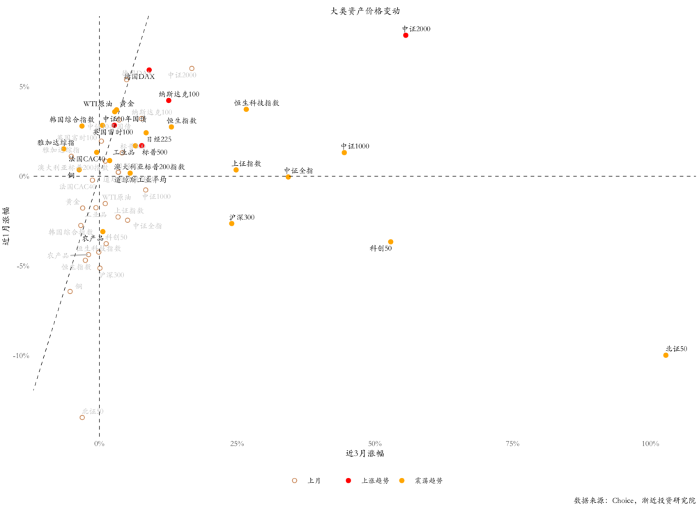 海外主要资产出现分化。股指跌幅明显的主要是道琼斯工业指数等大多数指数,仅有恒生指数、纳斯达克、德国DAX指数等少数指数小幅上涨,商品中主要是原油涨幅明显,黄金、铜等商品本周价格收明显上影线。随着海外政局重回稳定,市场波动也开始减小,不过随着本周欧央行降息而市场并未有明显反馈来看,市场对于基本面的担忧仍在主导市场行情走势。