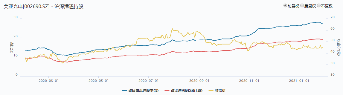 2020年以来,海外资金通过深港通持续加仓美亚光电,尤其是去年十一月开始,持仓比例提升明显。而公司的股价却表现比较低迷,这种反差出现的原因是什么呢?为何海外资金持续看好美亚光电呢?