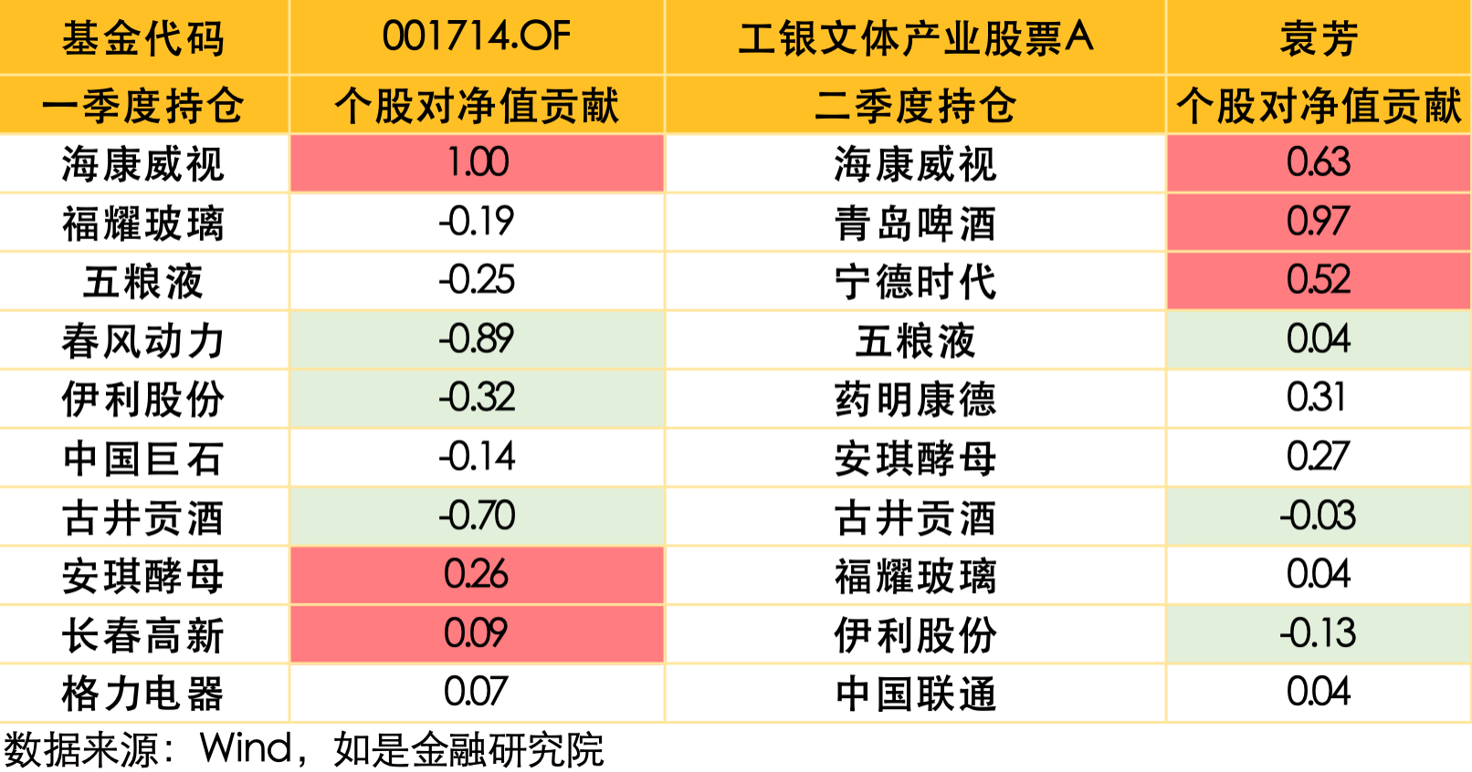 一季度中对业绩贡献较大的主要是海康威视、安琪酵母两只个股。整体来看袁芳持仓个股在节前的上涨和节后的暴跌中表现都不好,据我们推测主要还是由于她一季度持仓更偏高端制造业,在节前涨幅不高、节后跌幅不小带来的。