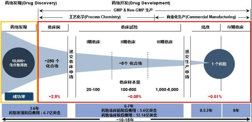 新药开发时间轴(资料来源康龙化成招股说明书)