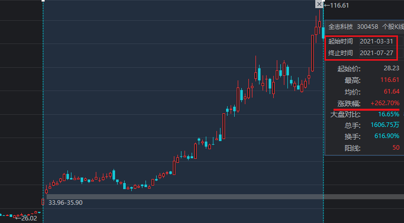 2019年6月27、28和7月1号这三天,股价连续三个涨停,从19年6月27号到9月23号,不到3个月的时间,股价涨了164%。