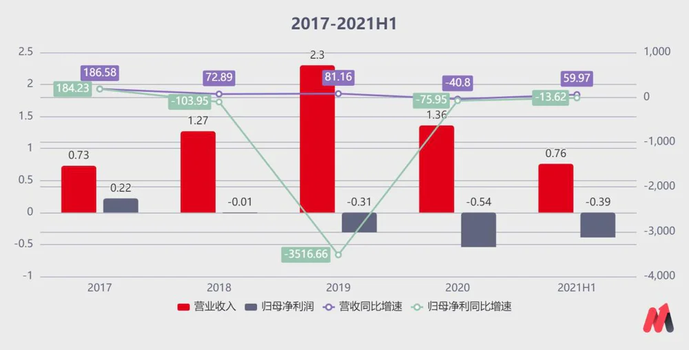 受益于公司所生产的天玑手术机器人的销量持续上升,天智航近年来的收入持续增长。2021年上半年,公司实现营业收入0.76亿元,同比增长59.97%。由于公司处于发展早期阶段,生产成本比较高,公司尚未实现盈利。2021H1,公司的归母净利润为-0.39亿元,亏损比上年同期增加13.62%。
