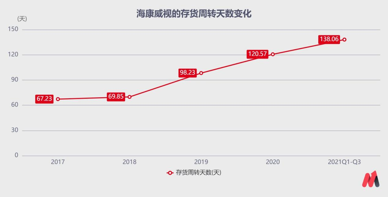 此外,海康威视的高库存问题不容忽视。为了应对美国商务部将海康威视纳入“实体清单”以及全球疫情导致供应链的潜在风险。自2019年以来,公司一直采用高库存战略,公司的存货周转天数呈现上升的趋势。