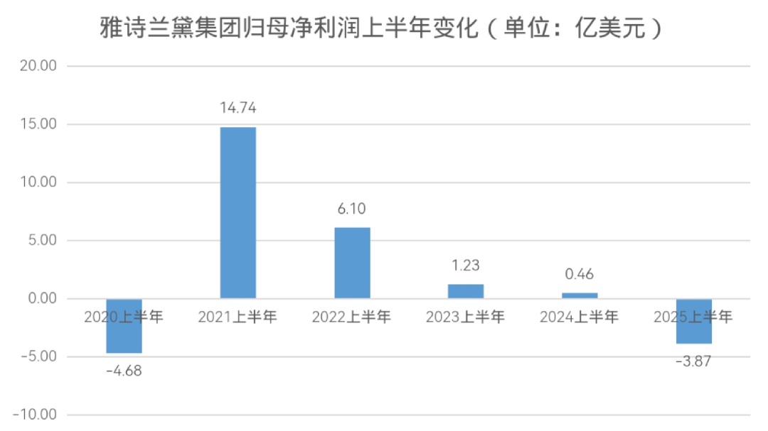 8月20日,雅诗兰黛集团公布2025财年及4月至6月财报。亿邦动力统计显示,2025年1月至6月,雅诗兰黛集团净销售额69.61亿美元,同比下降10.88%;净亏损3.87亿美元,同比断崖式下跌889.80%;归母净亏损同样为3.87亿美元,同比下降941.30%。