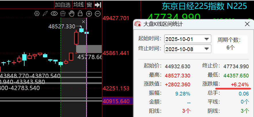 日经指数国庆期间的涨幅6.7%,主要受高市早苗有望成为首位女首相,推行类似于安倍经济学财政货币双刺激的政策: