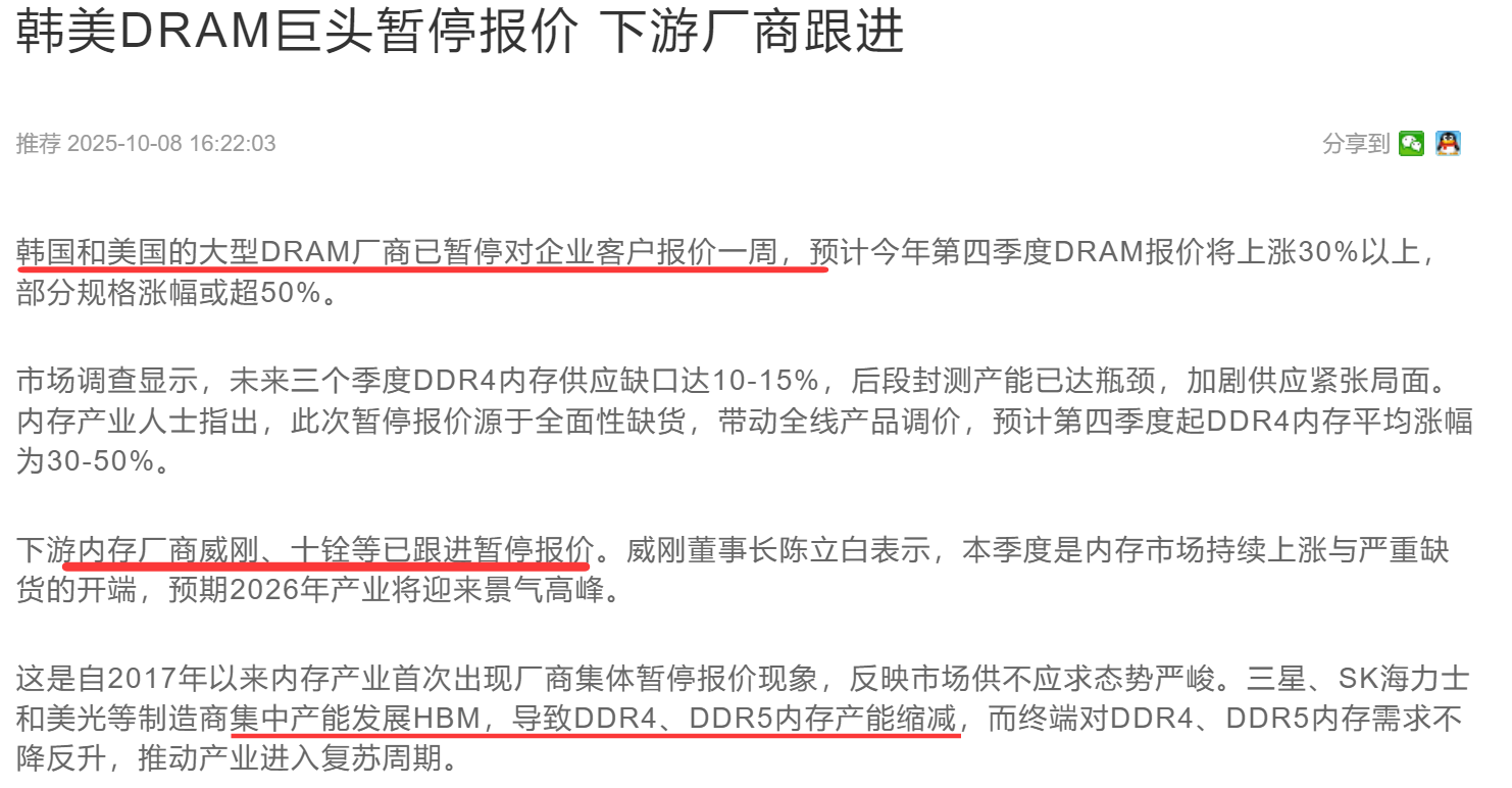 3、存储芯片涨价——利好生产商、设备长和经销商