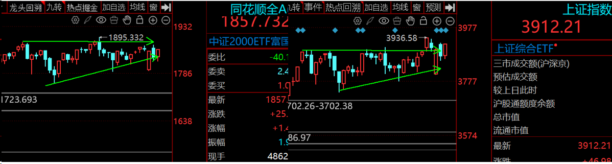 10月15日,市场探底回升,沪指涨超1%重回3900点,创业板指探底回升涨超2%。沪深两市成交额2.07万亿,较上一个交易日缩量5034亿。今日市场全天呈现超4300股飘红的普涨反弹行情,近百股涨超10%,截至收盘,沪指涨1.22%,深成指涨1.73%,创业板指涨2.36%。