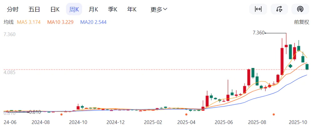 今年4月底只有1港元左右,到现在已经超过5港元,涨幅超4倍。