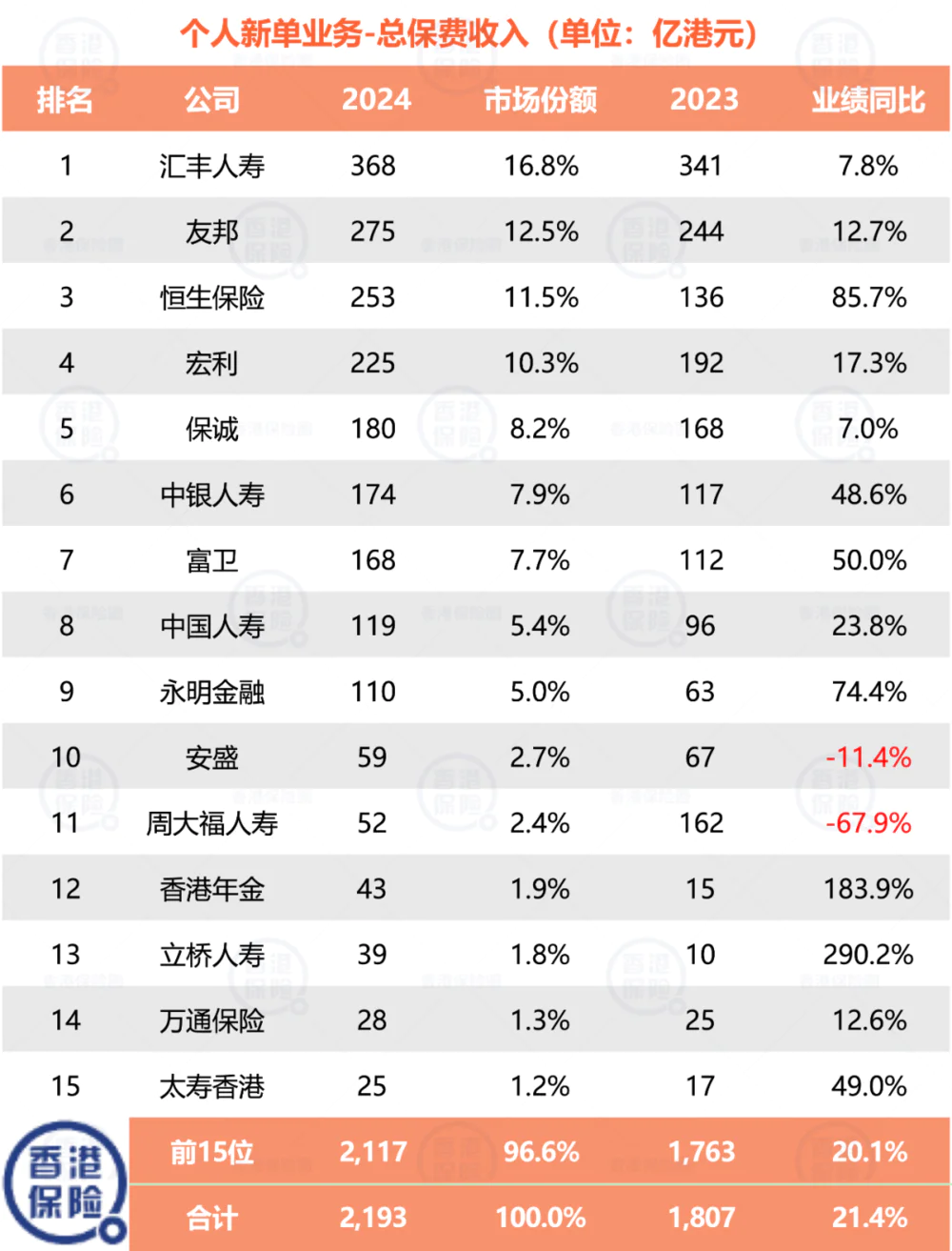 历史数据来看,港险新单保费除了疫情严重的2020和2022年,其他年份大都有增长,2024年更是大增了22%。