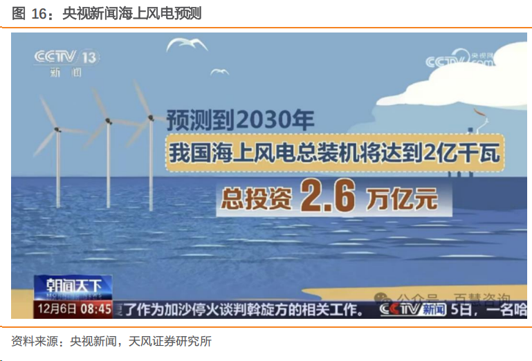 根据央视新闻,到2030年,我国海上风电总装机规模预计将达到2亿千瓦,深远海将成为未来海上风电“新蓝海”,预计“十五五”年均装机容量将达到29GW。