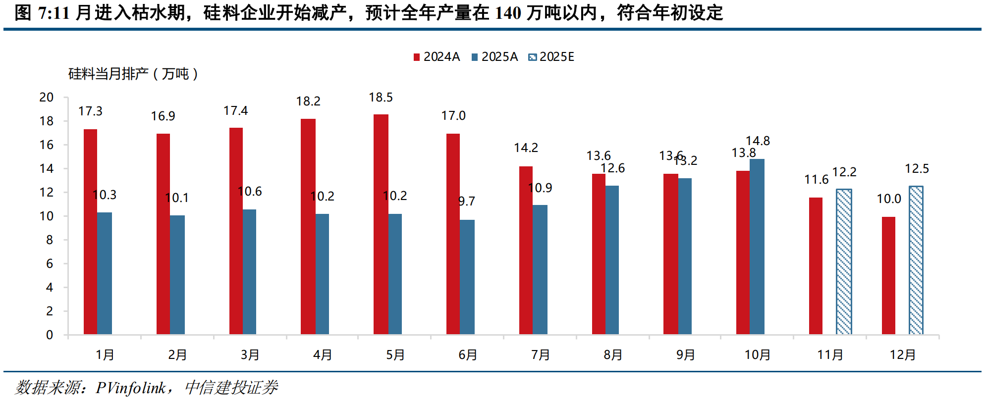 据中信证券统计,在控产控销方面,硅料企业已经开始按照年度产销框架控制产销量。随着11月枯水期到来,硅料企业已经开始执行减产计划,预计全年产量将控制在140万吨以内,符合年初设定的目标。