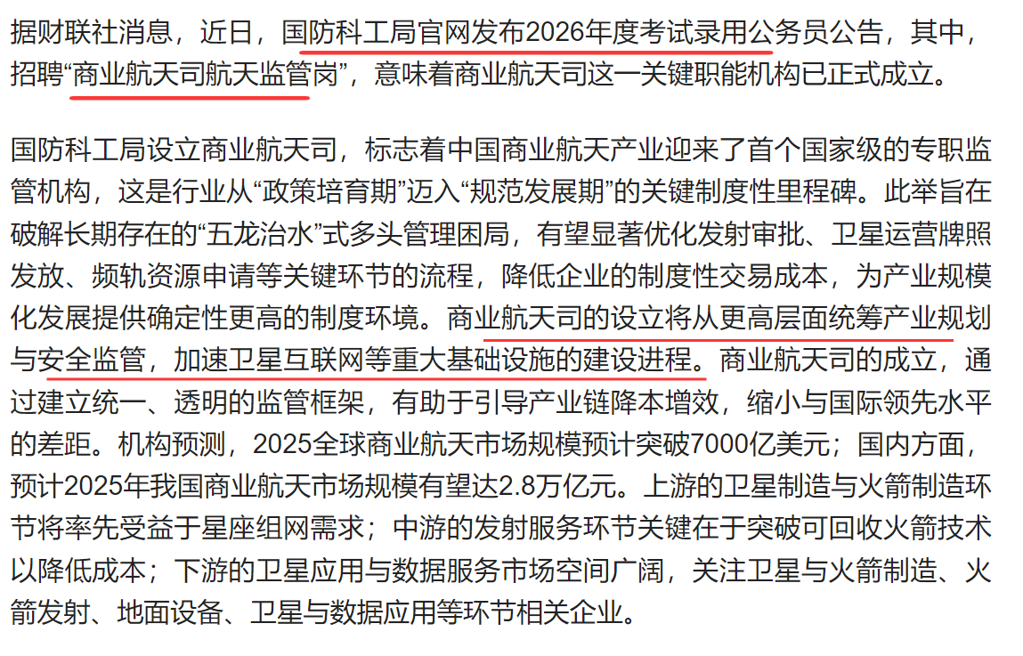 4、产业动态——商业航天司成立