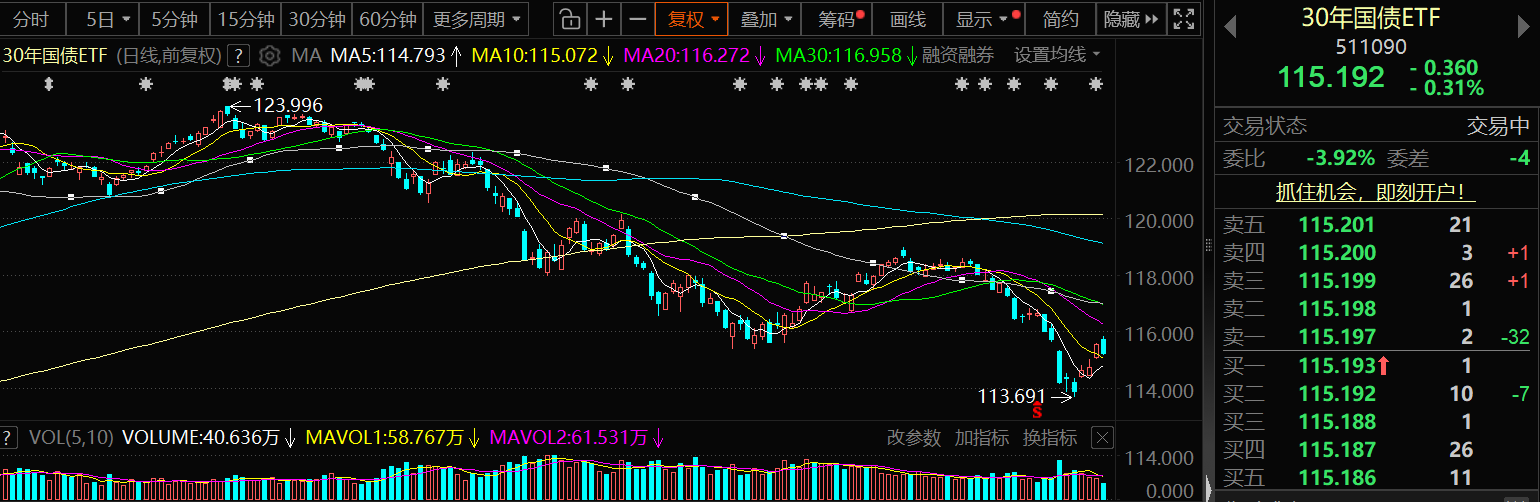 简单来说,就是到期年限在20年及以上的国债,这类国债主要由保险、养老金等长期资金进行配置。普通投资者较为常见的参与方式,是场内的30年期国债ETF(511090)。