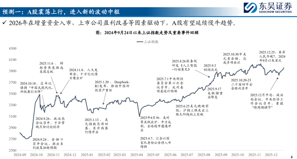 25年A股走出了震荡向上的走势,2026年A股牛市有望持续,预计指数依然震荡上行但涨幅放缓,投资者更加关注基本面改善和景气验证。中美全面博弈可能对A股投资产生重要影响,应警惕科技板块结构性/阶段性回调风险。