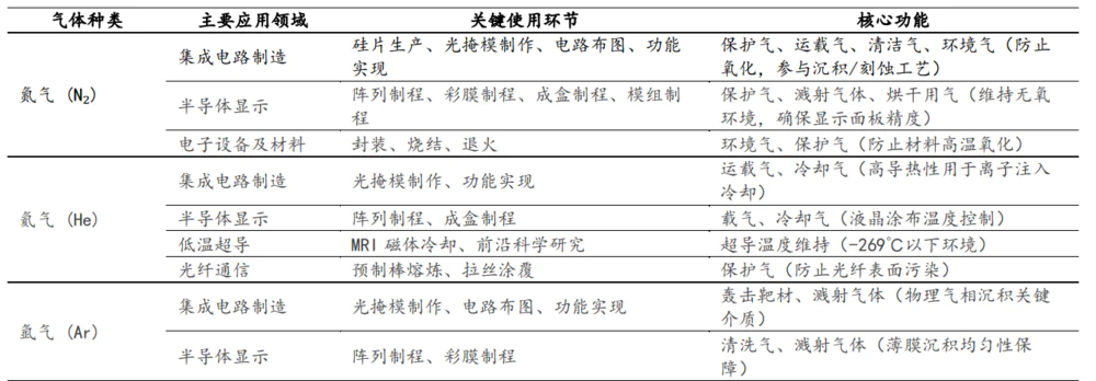 电子大宗气体在半导体制造过程中的有如下应用:
