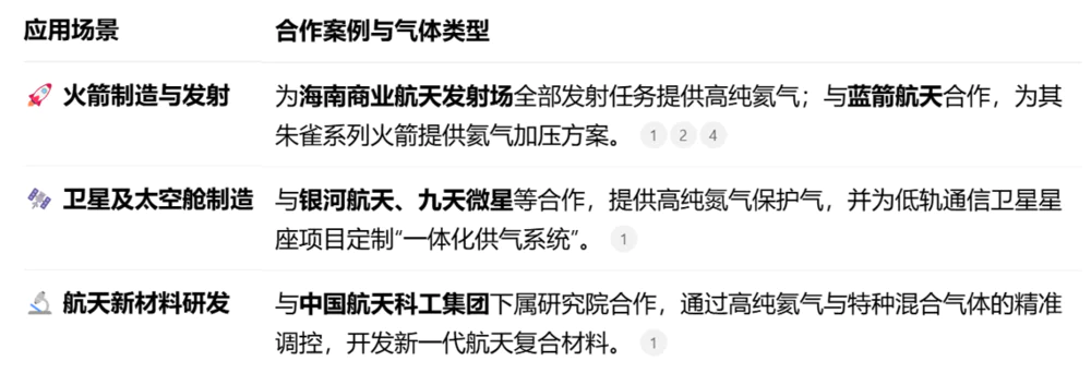 另外,广钢气体在商业航天领域的布局相当深入,它通过提供关键气体、创新供应模式和前瞻性的战略卡位,已经深度融入了中国商业航天产业的发展进程,其应用覆盖了从火箭发射到卫星制造,再到前沿材料研发的多个关键环节。