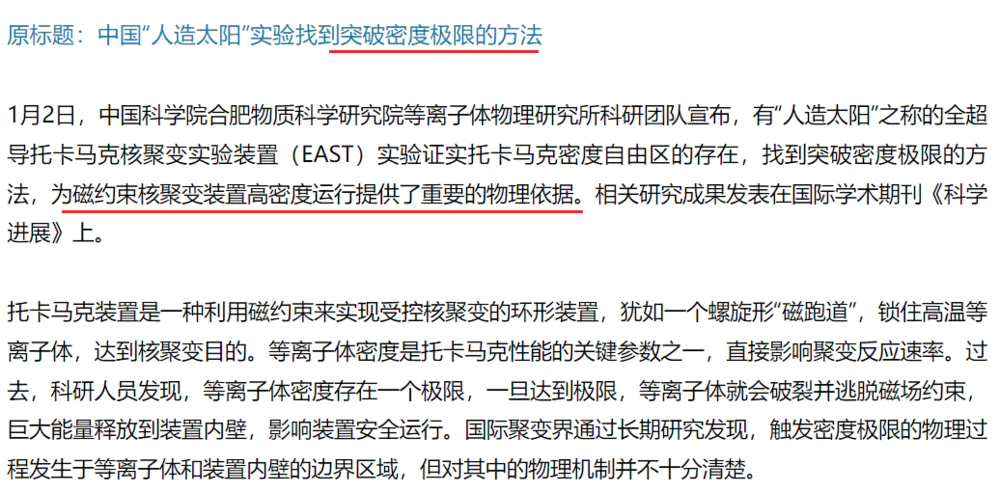 1月份,核聚变的消息不断,首先是1月2日,EAST有了巨大突破: