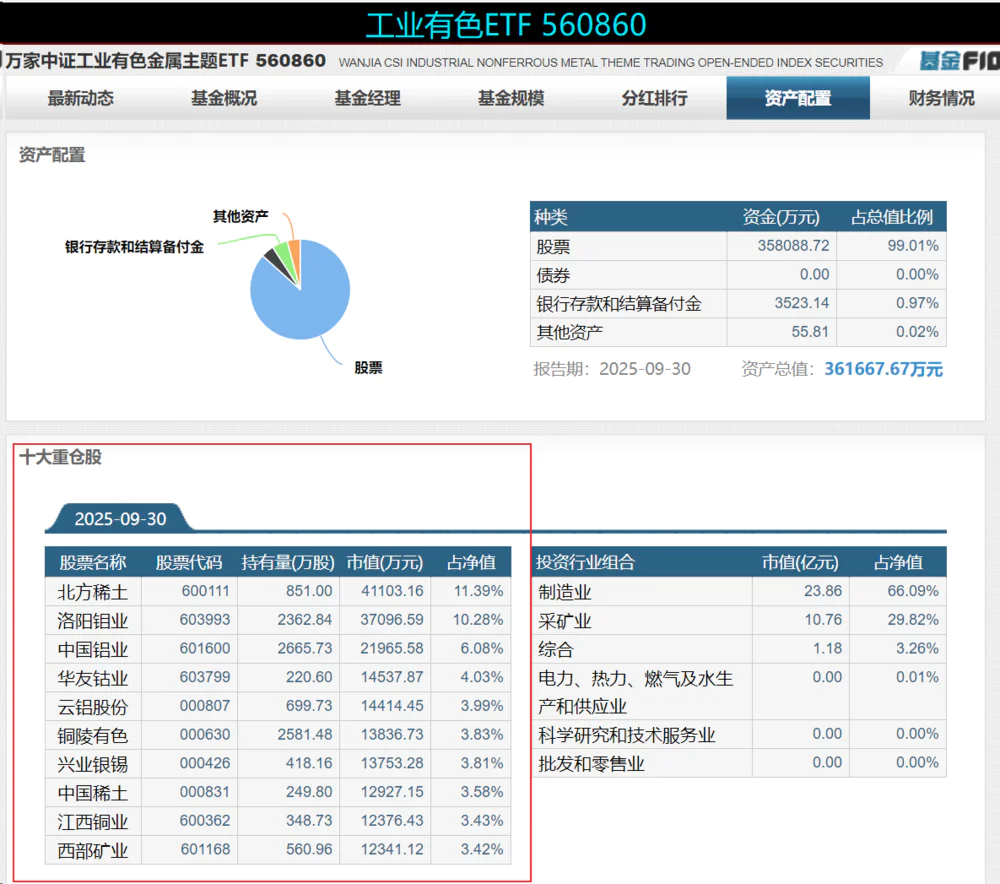 如果考虑大宗商品投资的,可考虑有色ETF,十大重仓股如下。
