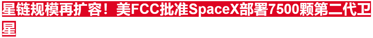 FCC声明称,马斯克旗下的SpaceX现可额外运营7500颗第二代星链卫星,使其全球在轨二代卫星总数增至15000颗。与此同时,FCC还允许SpaceX对卫星进行升级,并在五个频段开展运营,同时豁免此前限制星链系统“覆盖重叠”和“容量增强”的相关要求。