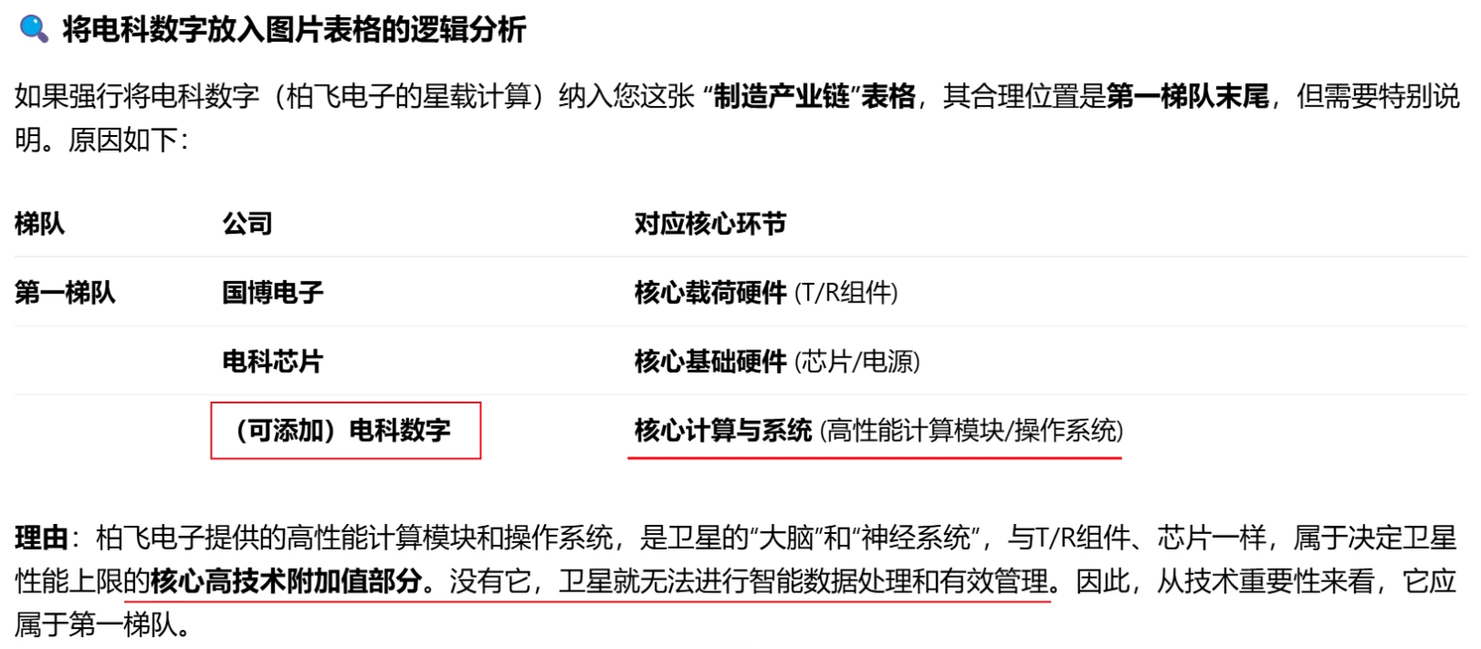 如果对电科系上市公司按商业航天产业链中的核心价值与层级关系进行分类,可以参考如下表格: