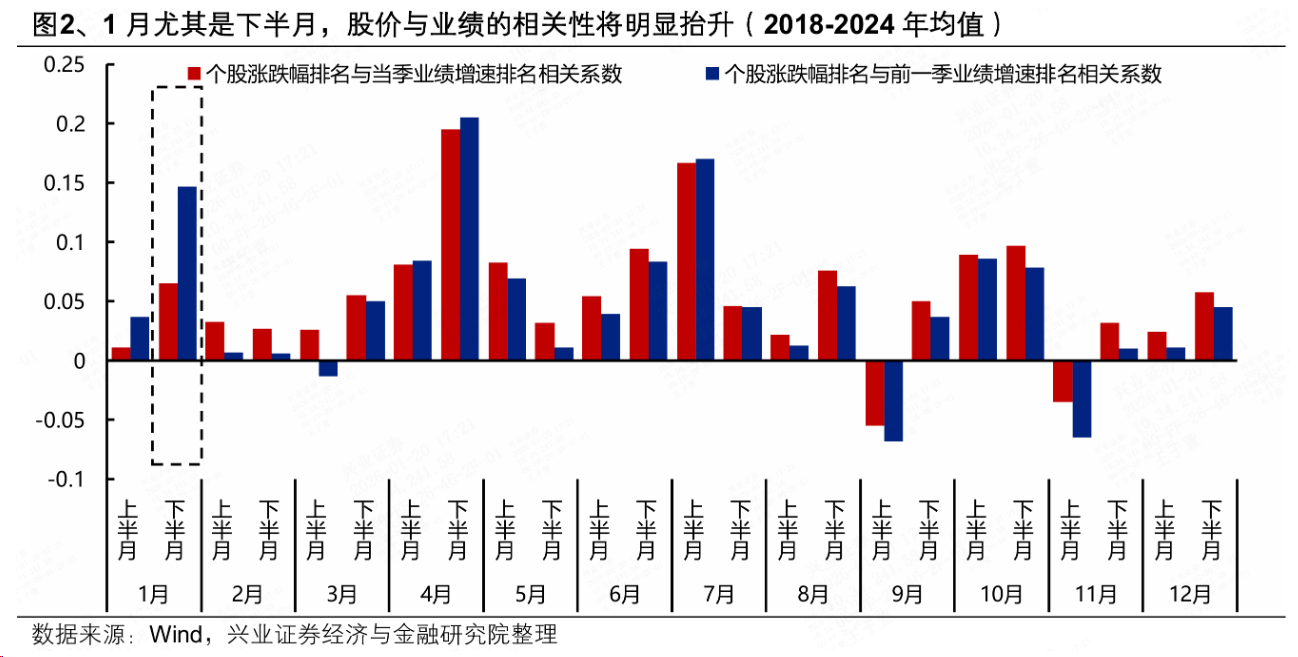 截至1月19日,A股年报业绩预告披露率为7.98%,1月下旬即将迎来披露高峰。根据现行的业绩预告披露规则,上市公司需要在1月31日之前条件披露上年年度业绩预告,其中净利润为负/扭亏为盈/同比上升或下降50%等情况需要强制披露。根据历史经验,1月下旬将进入披露高峰,最终披露率能够达到55%左右。随着业绩预告进入披露高峰,1月下半月股价与业绩的相关性明显抬升。随着市场情绪回归理性,叠加上市公司年报预告陆续披露,业绩将再次成为阶段性主导市场的重要因素,市场或将围绕基本面进行一轮结构上的调整,前期热点板块面临业绩验证,同时部分低位绩优板块也有望承接新一轮资金流入。