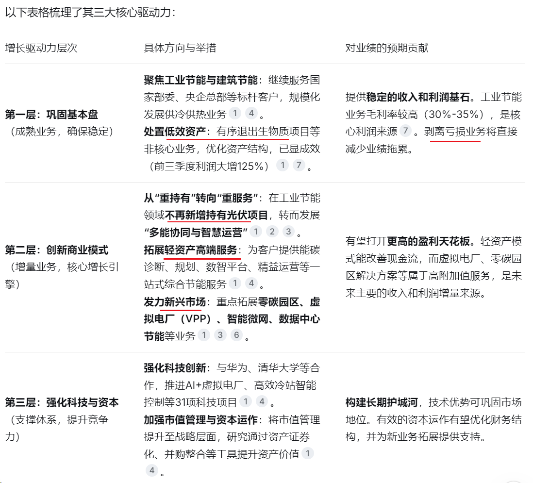 2025年净利润同比大幅扭亏为盈-。增长主要源于两大驱动力:主业稳定增长:核心的工业节能与建筑节能业务收入持续增长。历史包袱出清:拖累业绩的生物质等低效资产综合治理成效显著,减值损失同比大幅减少。