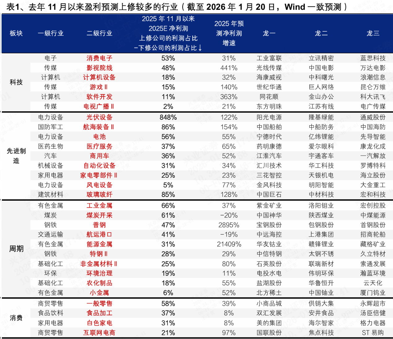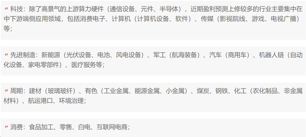 第三,从盈利预测变动看,去年11月以来盈利预测上修较多的行业主要集中在: