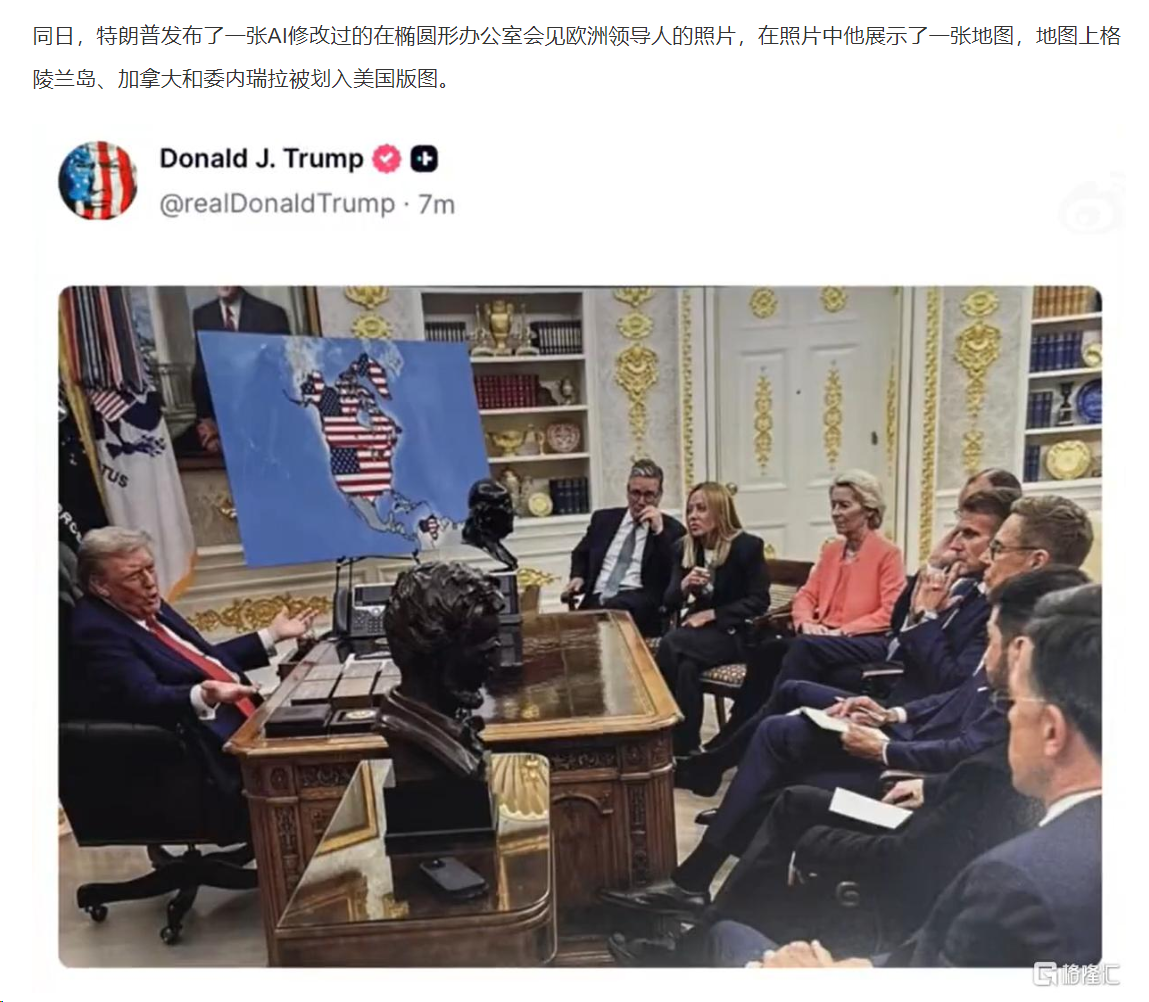 2、特朗普发图暗示吞并格陵兰岛、加拿大和委内瑞拉