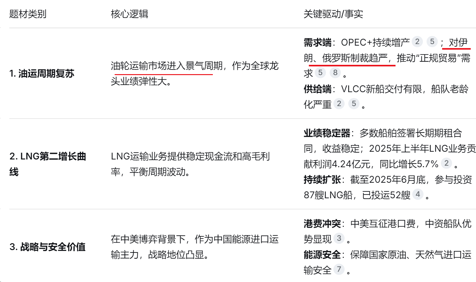中远海能是全球最大的油运龙头企业,核心业务覆盖原油、成品油运输,VLCC(超大型油轮)船队规模位居全球第一,其投资逻辑深度绑定油运周期、地缘冲突与全球能源贸易重构。公司业绩与原油运输价格(运价)直接挂钩,周期性极强。