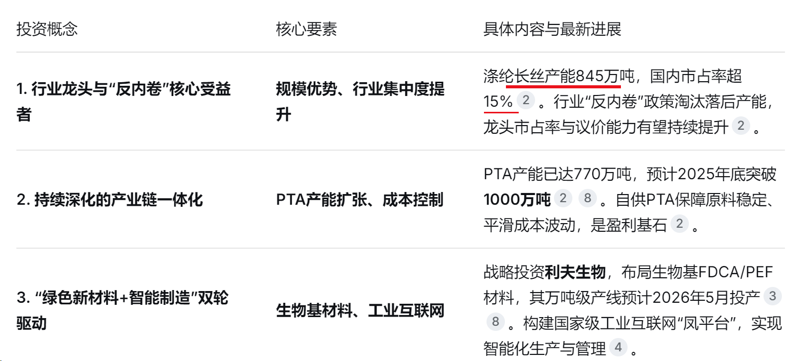 新凤鸣作为涤纶长丝行业的核心龙头企业,其投资概念是“传统主业实力+前瞻性战略布局”的综合体。