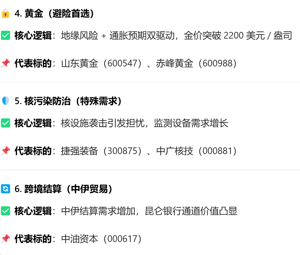 特朗普政府虽然叫停了对伊朗的军事打击,但全球军备竞赛已经开始。以色列需要补充其拦截弹,沙特需要升级反导系统,欧洲各国也因担心战火外溢而增加国防预算。这意味着,无论是否爆发直接冲突,军工企业的订单都已有了保障。洛克希德·马丁、雷神技术等军工巨头,未来5年的订单前景变得异常确定。