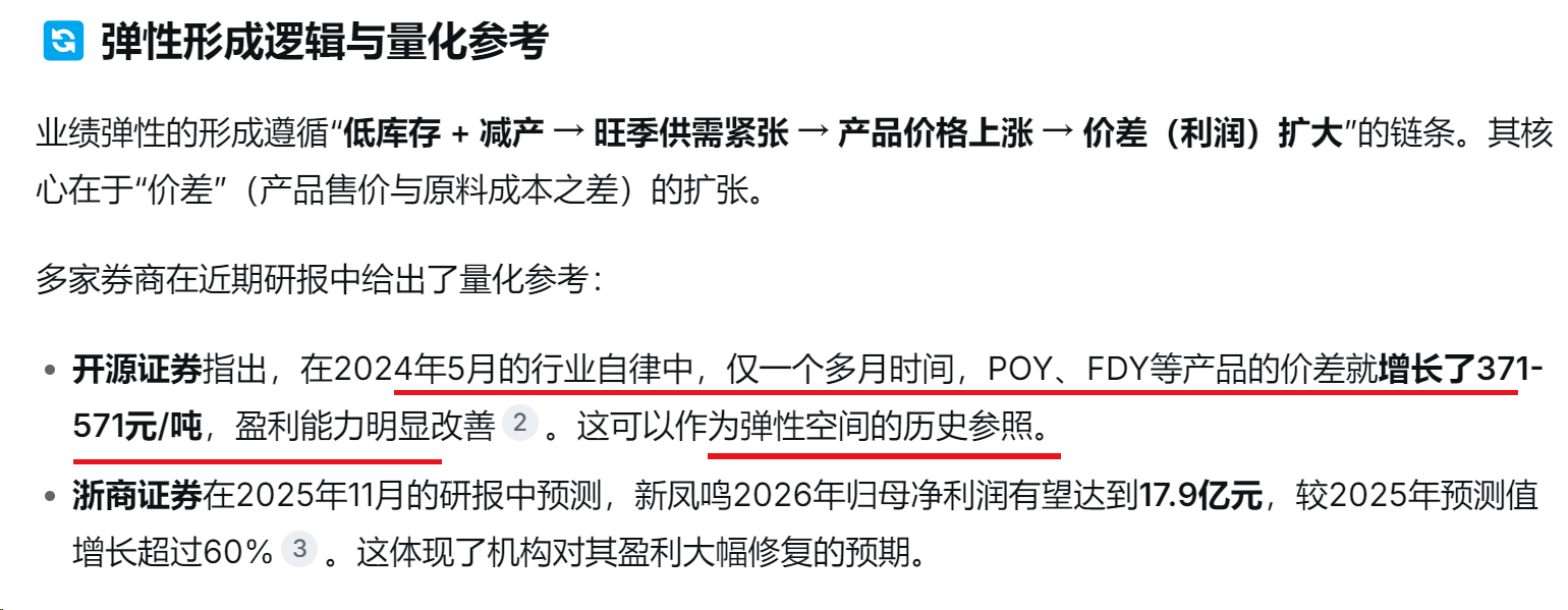 PTA环节可能迎来反转:新凤鸣拥有大量PTA产能,而目前PTA行业正经历全行业亏损,对“反内卷”诉求强烈。减产和行业自律有助于PTA加工费修复,若实现,将同时改善其长丝和PTA两大主业的利润。