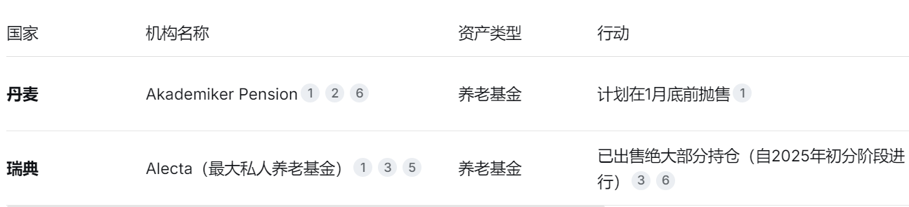 瑞典和丹麦确实有大型养老基金在近期宣布了抛售美国国债的计划。 1月20日,丹麦养老基金Akademiker Pension宣布将于本月底前出清所持全部1亿美元美国国债。该基金同时强调,抛售决定与美欧围绕格陵兰岛的争端无直接关联。