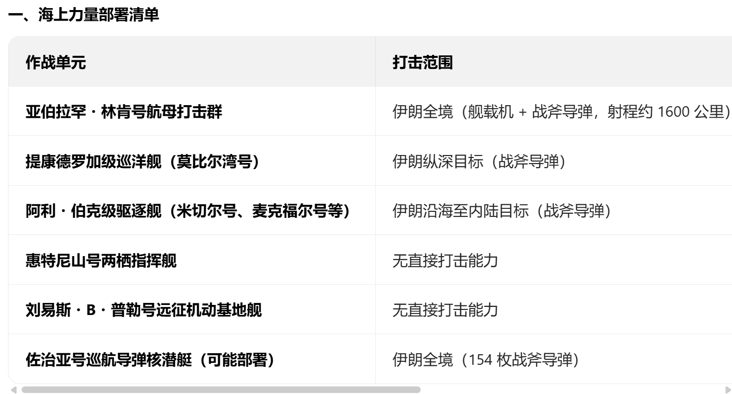 截至 2026 年 1 月 26 日,美国在伊朗附近以海空力量为核心,结合周边基地地面与反导部署,形成多层威慑与打击体系,