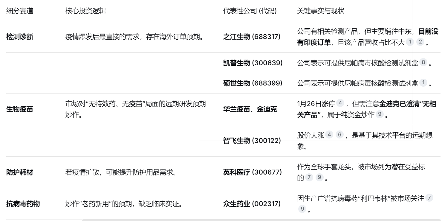 行情完全由短期新闻驱动,与公司基本面关联弱。一旦疫情未扩散或关注度下降,资金会迅速撤离。目前疫情规模有限,实质订单缺失,核心的检测公司已明确表示,相关产品当前营收占比小。行情持续性预期不强。