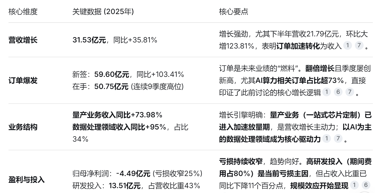 芯原股份2025年的业绩预告,公司正处于“订单爆发 → 营收高增 → 规模效应显现 → 盈利改善” 的关键拐点上。以下是核心指标分析: