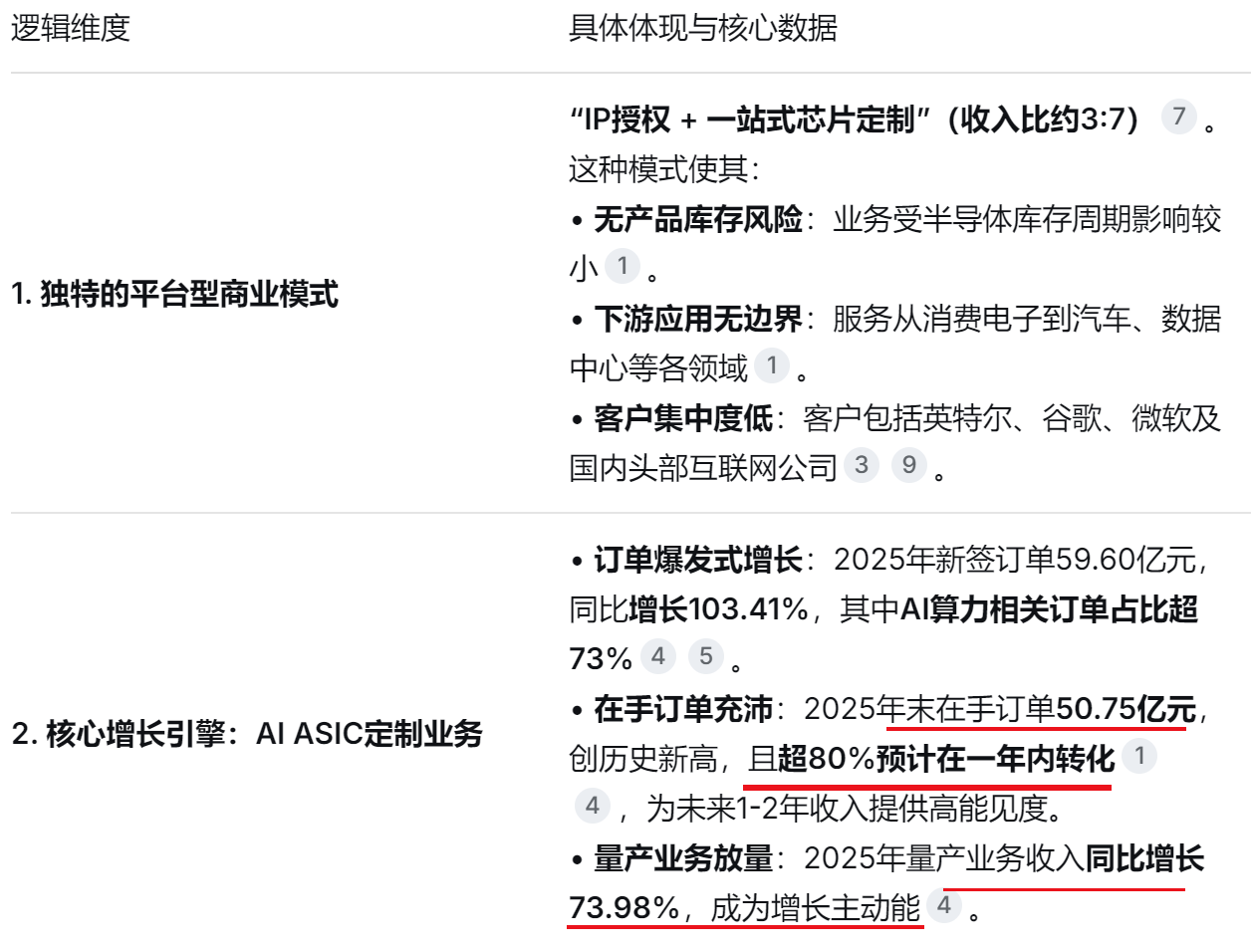 芯原股份(688521)的核心投资逻辑围绕其 “中国半导体IP第一股”与“AI ASIC龙头企业” 的双重身份展开。市场看好其凭借独特的平台型商业模式和深厚的IP积累,在AI算力需求爆发的浪潮中,将订单优势转化为确定性的业绩增长。