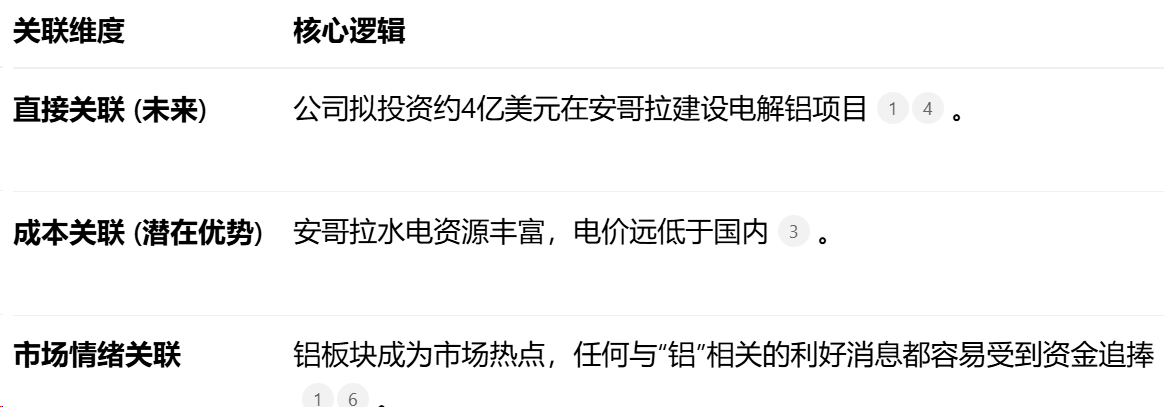 百通能源原本的主业是工业园区的集中供热(热电联产),与铝业没有直接关系。真正的转折点发生在2026年1月27日,公司公告计划投资约4亿美元在安哥拉建设电解铝项目。这一重大战略转型,使得市场将其视为一支潜在的“铝概念股”。尽管项目从建设到投产产生利润还需数年时间,但股票市场交易的是预期。在铝价上涨的背景下,市场自然会提前反应,看好其未来的盈利前景。