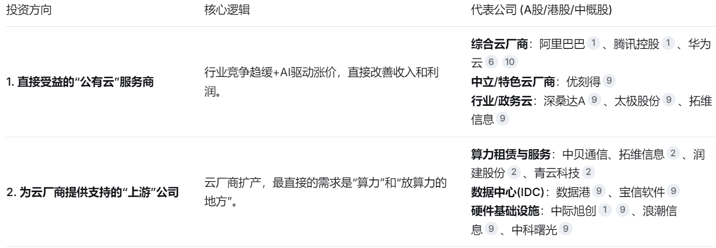 海外市场已率先落地涨价,亚马逊、谷歌等头部企业大幅上调云服务价格,涨幅区间达 15%-100%,核心诱因是内存、硬盘、CPU/GPU 等硬件成本攀升,叠加 AI 智能体普及带来的算力需求指数级增长,行业成本端与需求端双重推升涨价动力。国内市场涨价预期持续强化,当前算力供给紧平衡格局更为突出,同时面临与海外一致的上游硬件涨价压力,机构普遍预判国内云服务、算力租赁价格将跟进上调,且阿里云已率先释放涨价动作。