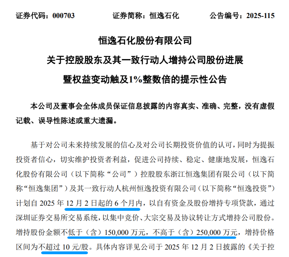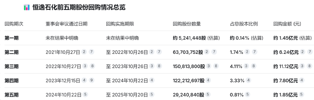 自2020年以来,恒逸石化已陆续实施完成五期回购方案。