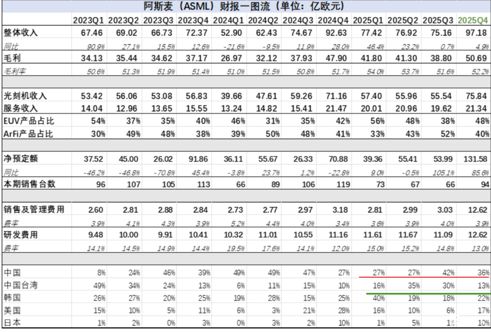 整体来看,ASML四季度财报表现相当夸张: 其本身产品相对单一,很难出现单季度营收大幅超预期的情况,但最关键的是新订单额却录得了远超预期的表现。