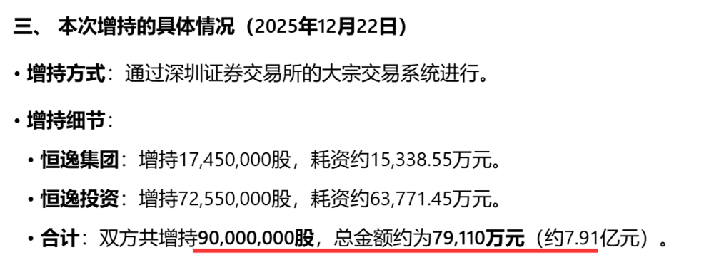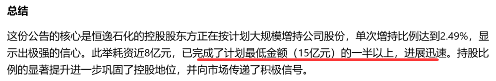 合计:增持 2.66 亿股,总金额22.44 亿元,已接近增持计划下限(15 亿元),距离上限(25 亿元)还有约 2.56 亿元空间