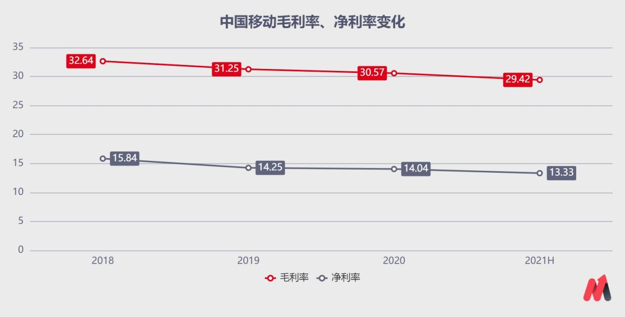 而作为重资产型的运营模式,中国移动每年都需要对基础设备等固定资产进行资本投入从而增加营业成本,同时基础设备的折旧、员工薪酬等费用较为刚性。因此,短时间来看公司的毛利率、净利率将继续承压。