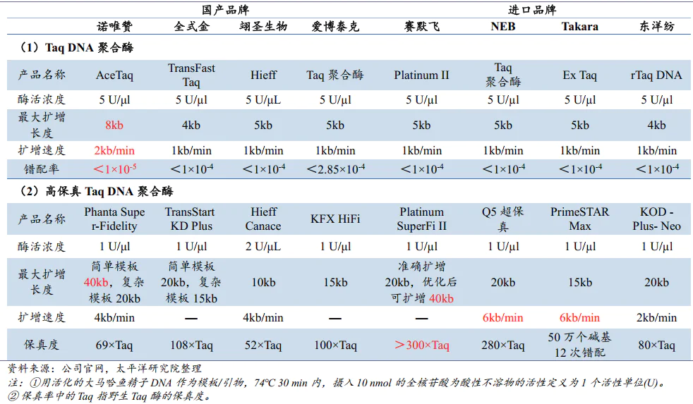 而用于基因筛选、分子诊断、克隆表达、突变检测等对保真性要求较高的高保真DNA聚合酶同样表现亮眼,扩增长度可达到40kb,在进口代表品牌产品中处于前列。