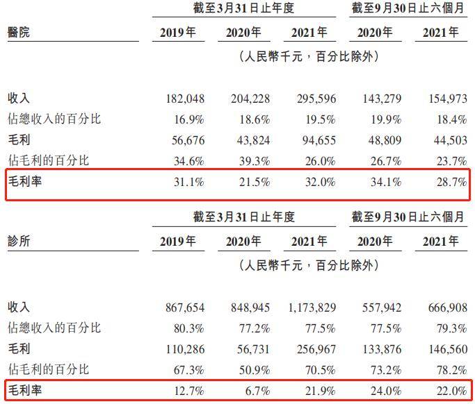 进一步分析公司的盈利情况,我们看到瑞尔的毛利率比较低,2019/2020/2021财年分别为15.2%/10.1%/24.1%。2020年公司的毛利率大幅下滑是新冠疫情导致,尽管医院诊所暂时关闭,但仍需支付租金及雇员薪金等固定成本。在疫情得以控制后,公司的毛利率进一步提升,但这与通策医疗2020年的毛利率(45.17%)相比,仍有很大的差距。