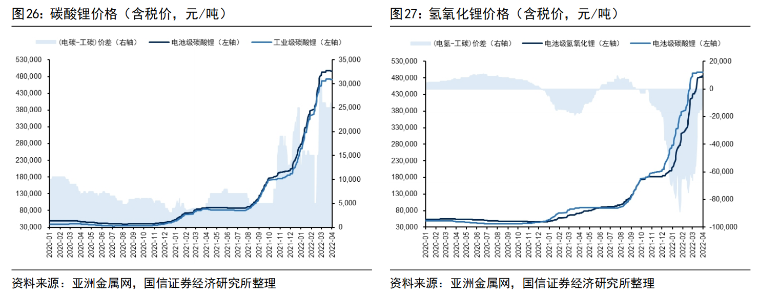 与此同时,赣锋锂业在2022年的产能有望提升,公司持有46.7%权益的Cauchari-Olaroz盐湖项目将于2022年H2投产,预期增加1万吨LCE产量,公司有76%包销权。